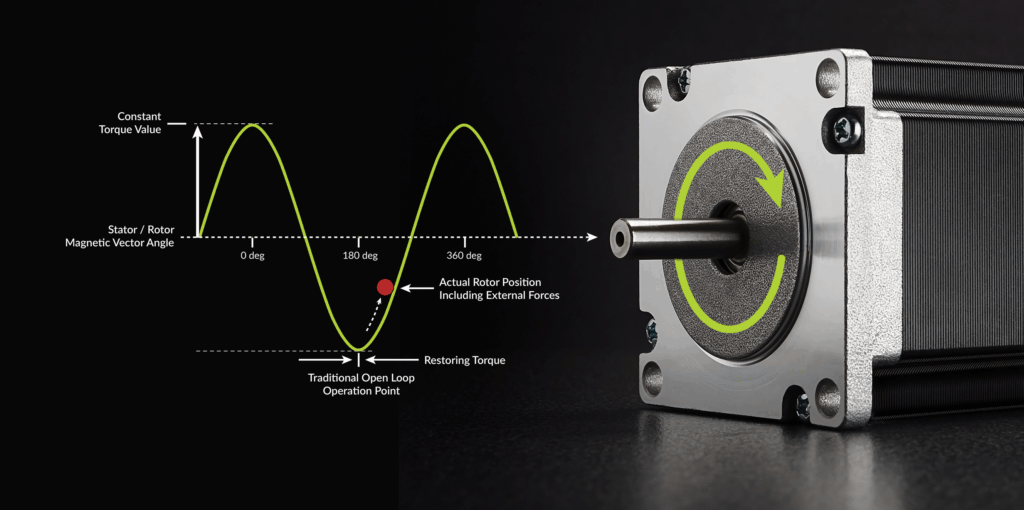 Die Einführung der Closed-Loop-Technologie wirkt diesen Nachteilen entgegen. Durch den Einsatz eines Encoders wird die tatsächliche Rotorposition kontinuierlich erfasst. Die Steuerung regelt den Statorstrom adaptiv über eine PID-Schleife, woraus ein effizienterer und dem Bedarf angepasster Stromfluss resultiert. Die Selbsterwärmung des Motors sinkt und das System kann auf Abweichungen sofort reagieren: Positionsfehler lassen sich gezielt kompensieren, der Motor erreicht unabhängig von seiner Grundcharakteristik eine hohe Positionsgenauigkeit - limitiert nur durch die Encoder-auflösung, die heute auch in preisgünstigen Segmenten hohe Werte bietet.